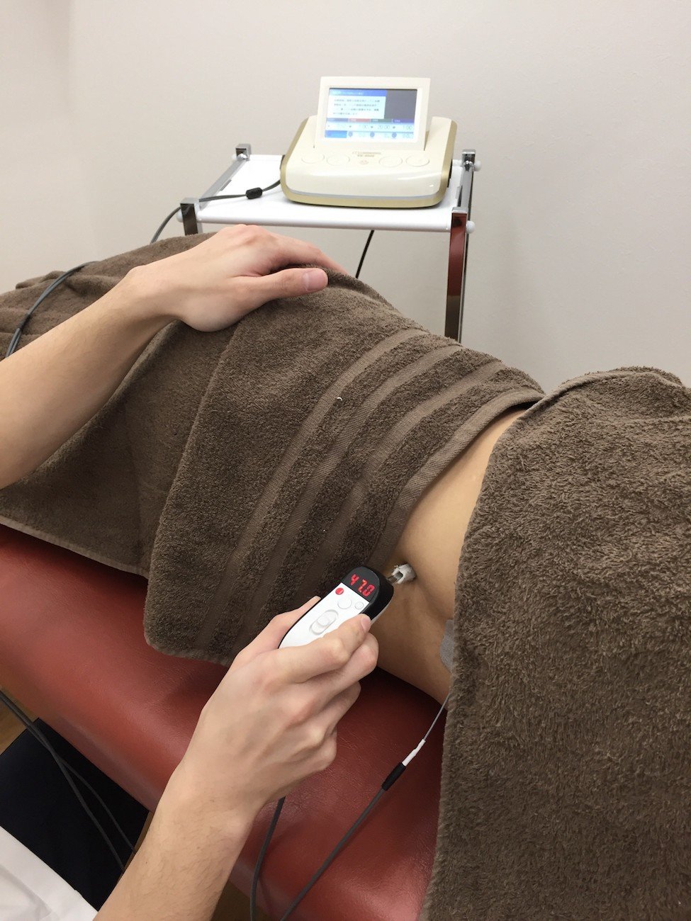 ハイボルト(電気治療)は痛みを出している神経の興奮を鎮める効果と同時に局所の血流量を上げることで、組織の修復を促すことができる事から、ぎっくり腰施術に優れています。